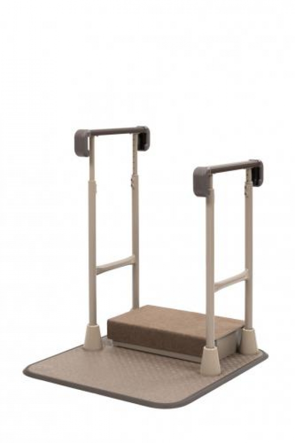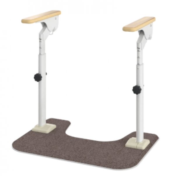 従来品よりも手すりが高位置にあり、手すりに身体を預けやすく立位姿勢が安定するため、上体を起こすことができ、視野が広がり歩き出しの転倒予防になります。